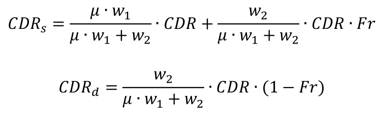 Assuming w1=2M, w2=10M, Fr=5%, μ=1.5, then we know CDR=3780, rs=18.57%, rd=10.08%
