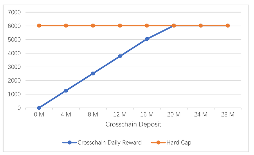 Second, to achieve a balance between cross-chain reward and PoS consensus reward, we set a hard cap for cross-chain daily reward as