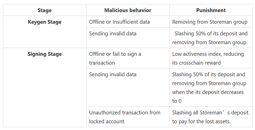 First, community members are rewarded to act as Storeman nodes building bridges to provide the cross-chain functionality. Second, malicious behaviors are punished by slashing bonded stake.