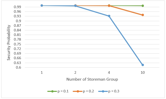 Figure 11 Graph showing how the level of security is impacted by number of storeman groups nodes