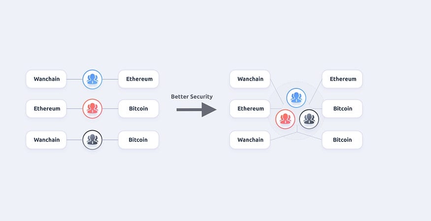 Wanchain has started to support multi-bridge crosschain operations. One type of transferred asset in a blockchain can come from various source blockchains. For example, btc@ethereum can come from btc@bitcoin or btc@wanchain. Hence, problems arise as how we can guarantee that btc transferred from both sources are equivalent. To ensure that assets from different bridges are equivalent, the smart contract logic should be the same and the bridges should be secured. Furthermore, the operators that carry out the transfer will also be the same group of nodes that run compatible crosschain codes.