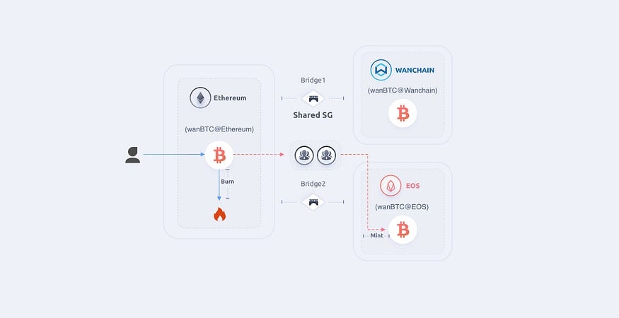 Step4: SG2 receives this event and mints the same amount of wanBTC for the user on EOS;