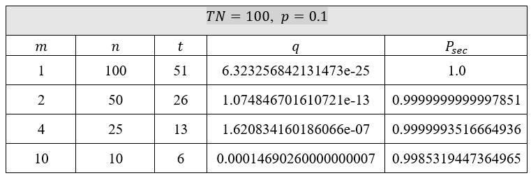 Figure 10 Security computation for p=0.1 and TN=100