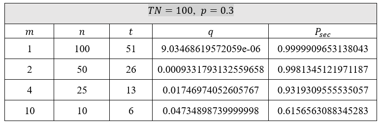 Figure 8 Security computation for p=0.3 and TN=100
