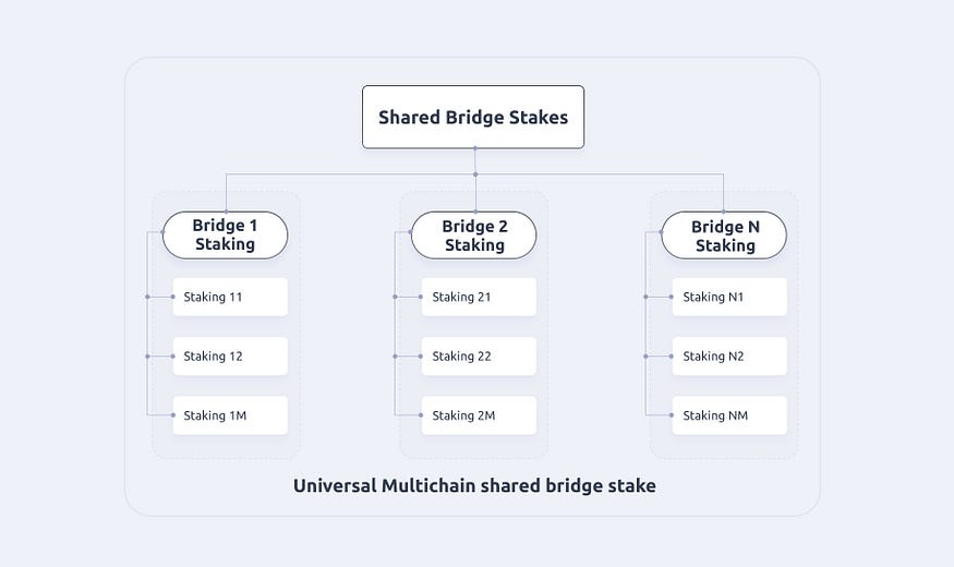 One important change for a universal crosschain platform is that the staked funds are shared among bridges and hence are “need-based” and can be dynamically allocated to bridges that carry out the transfer of crosschain assets.
