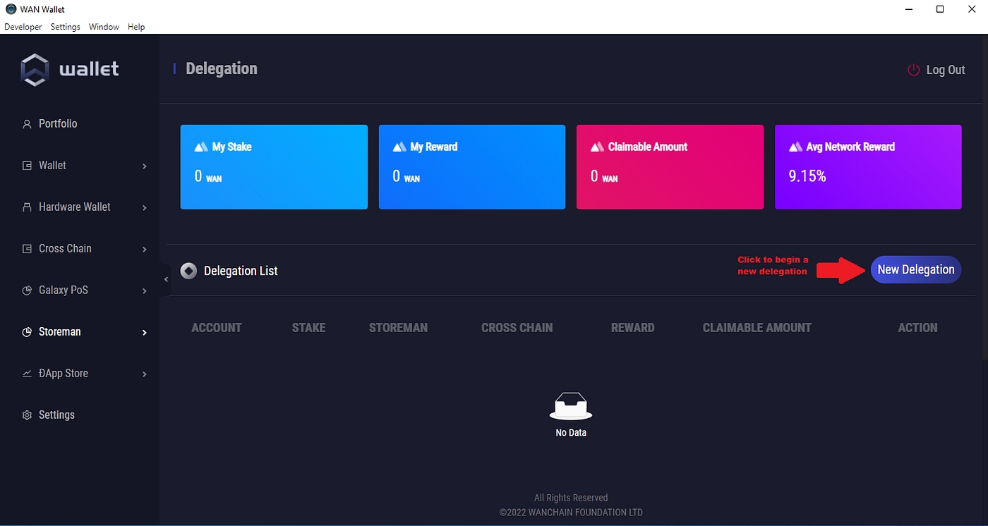 An in-depth guide outlining how to delegate your $WAN to a Wanchain Bridge (Storeman) Node to earn rewards with no risk of impermanent loss! This guide will focus on the Wanchain Desktop Wallet.