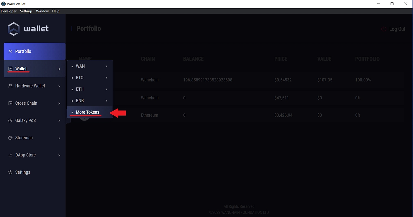 Step 1: Enable ETH and wanETH to the Wanchain Desktop Wallet.