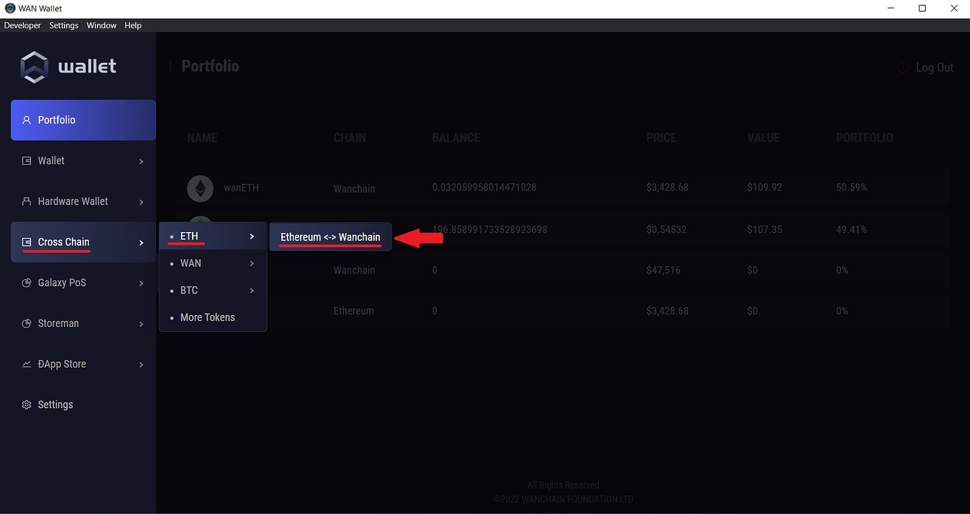 $ETH from Wanchain to Ethereum using the Wanchain Desktop Wallet