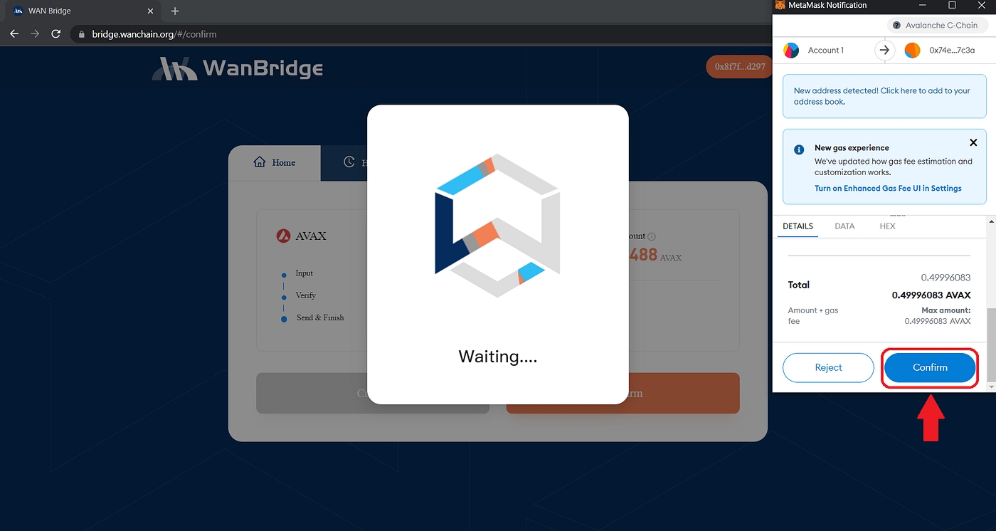Step 3: Initiate a crosschain transaction to move your $AVAX from Avalanche to Wanchain.