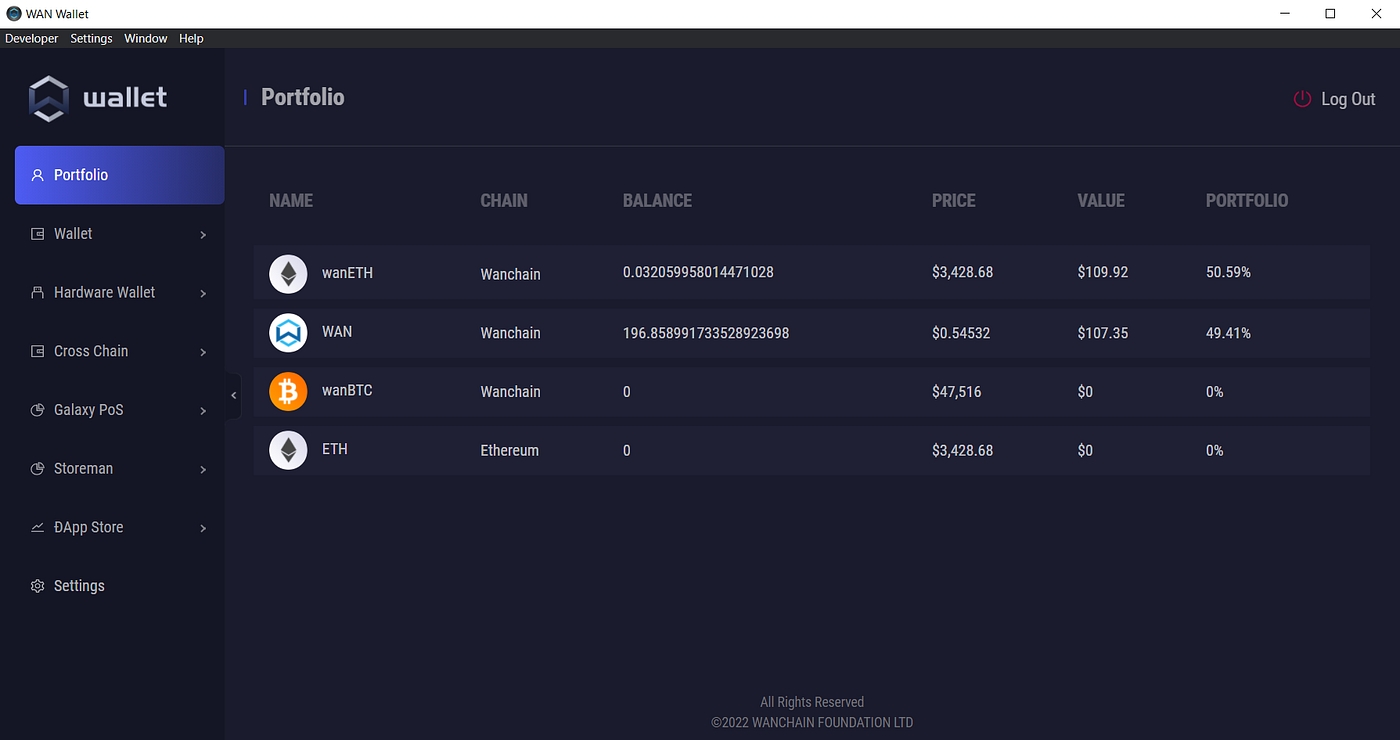 $ETH and $wanETH wallets are now enabled and appear in your portfolio overview.