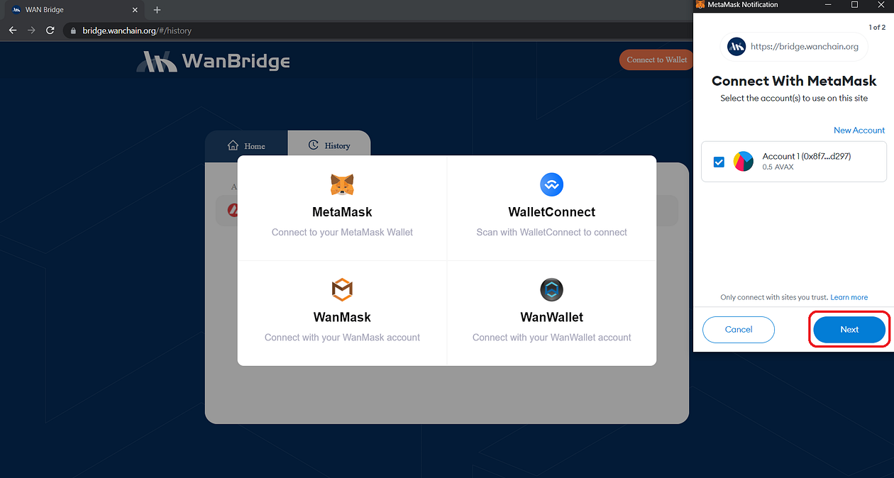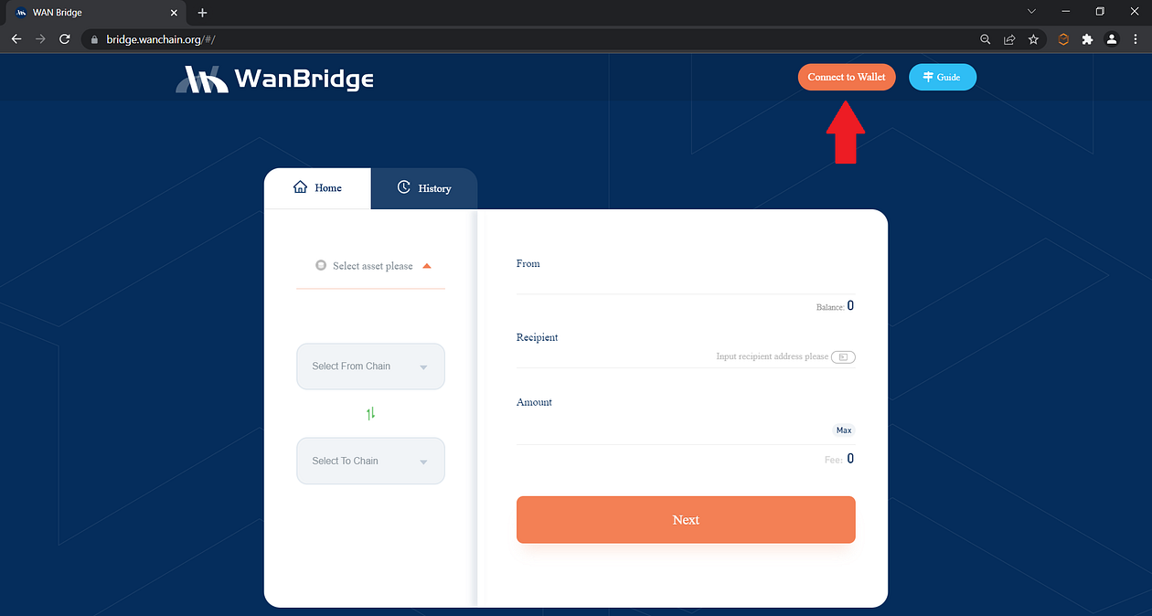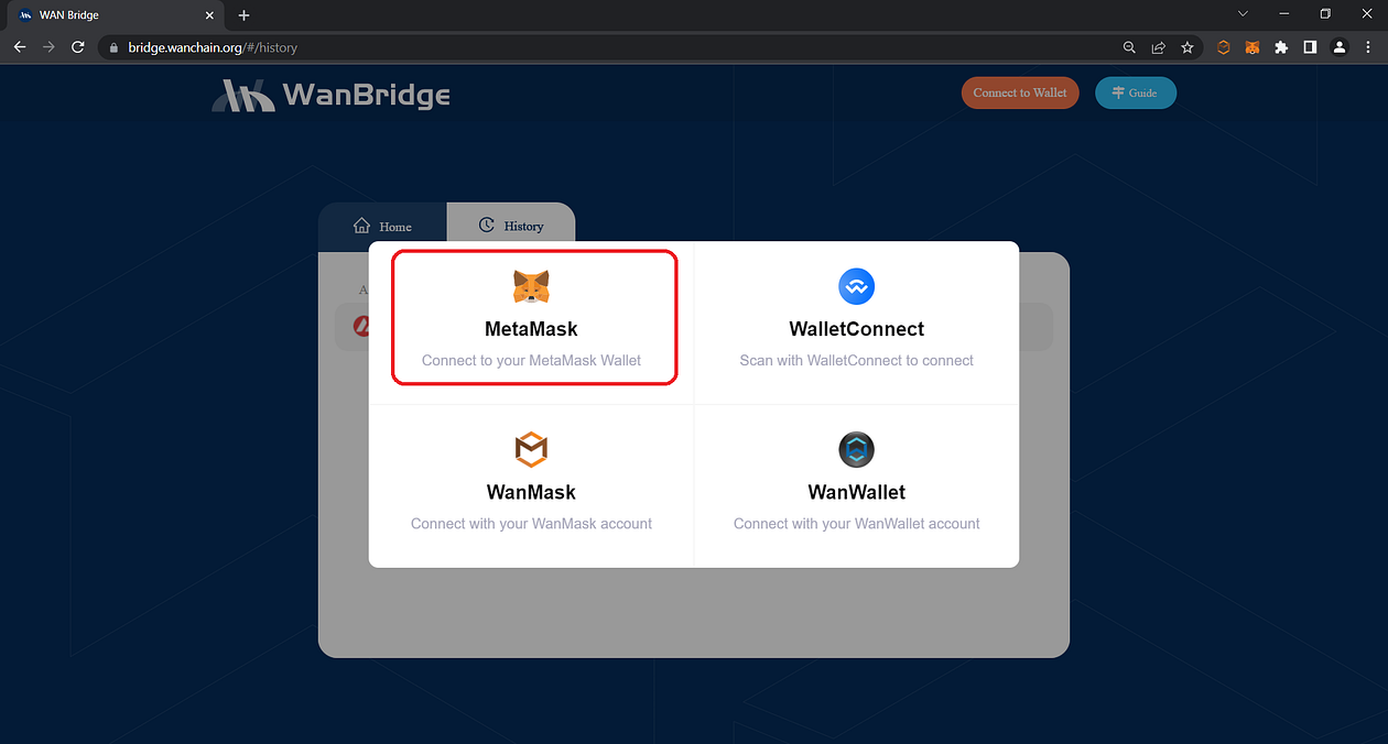 Step 2: Visit the WanBridge web portal and connect your wallet.