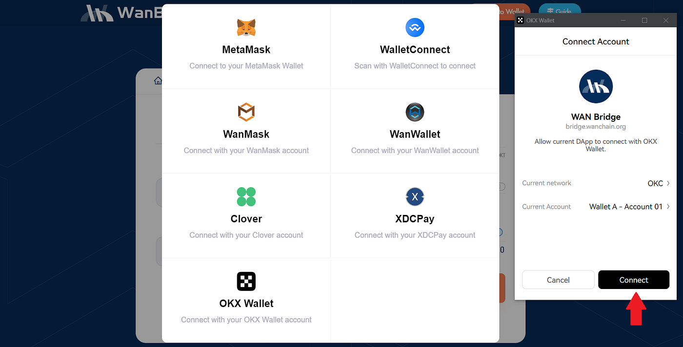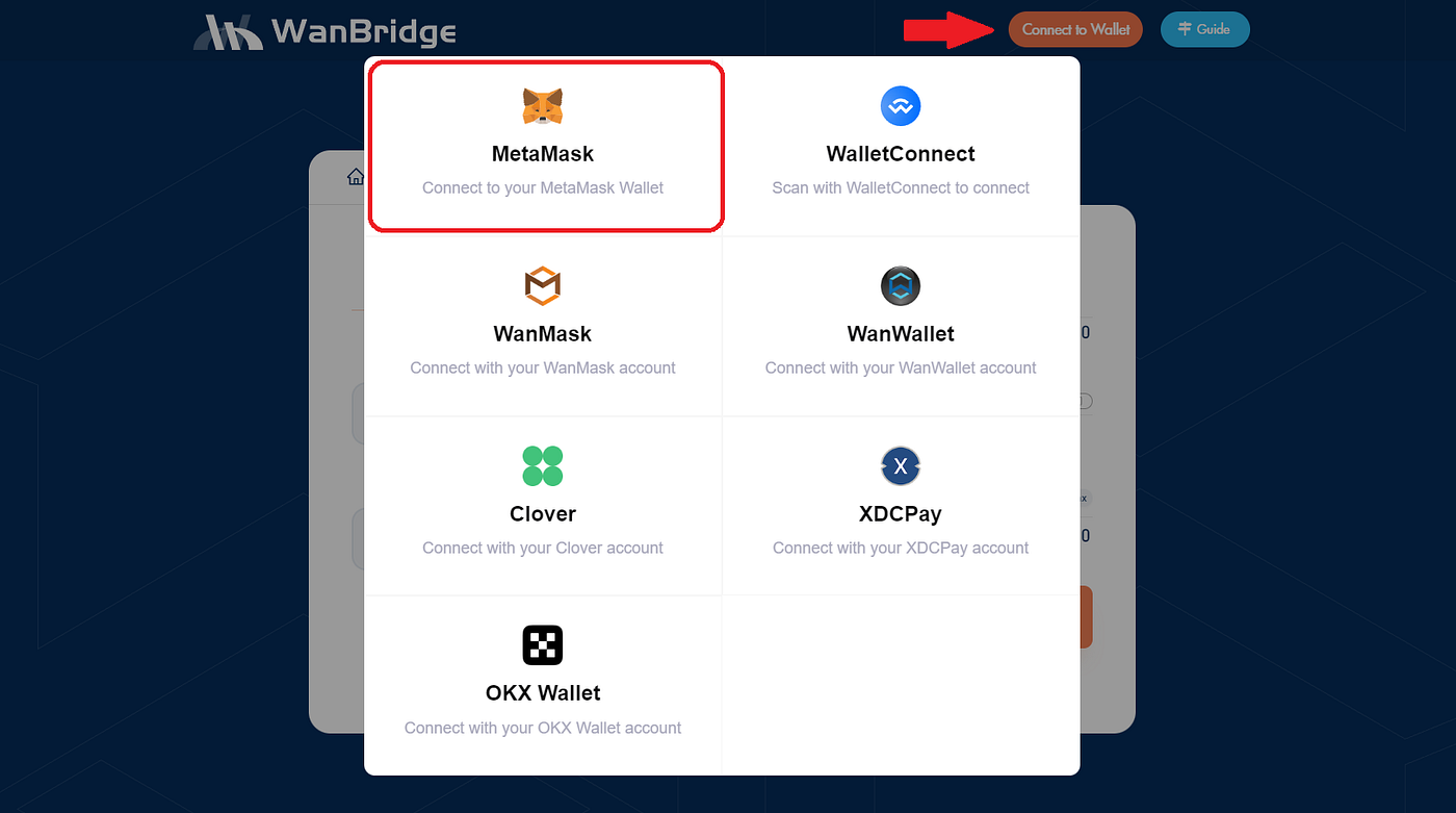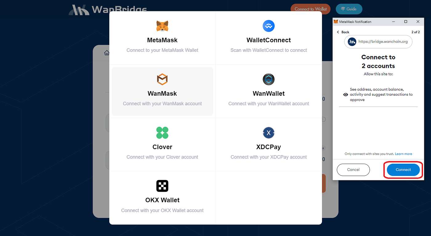 Step 2: Visit the WanBridge web portal and connect your wallet.