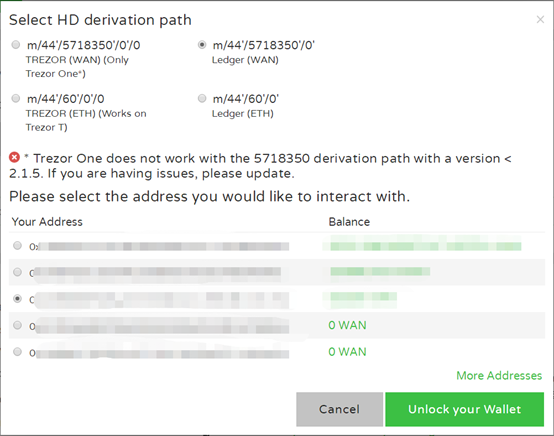 If you don’t have a Ledger or Trezor hardware wallet, please refer to “Wanchain Offline Wallet Partner In Usage Method” .