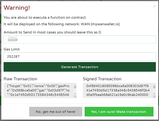 After the transaction signature information is generated, click “Yes, I am sure! Make transaction.”