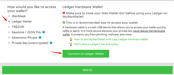 After connecting to the wallet and selecting the address successfully, click the “WRITE” button;