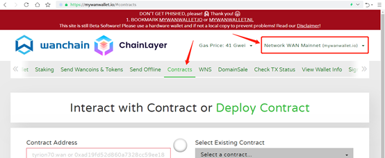 At the top right of the page, confirm that you have selected Network WAN Mainnet (mywanwallet.com):