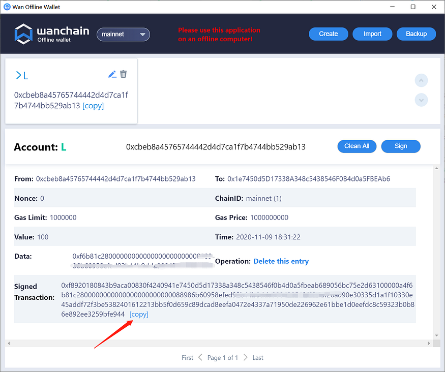 (OFFLINE WALLET) Generate Signed Transaction