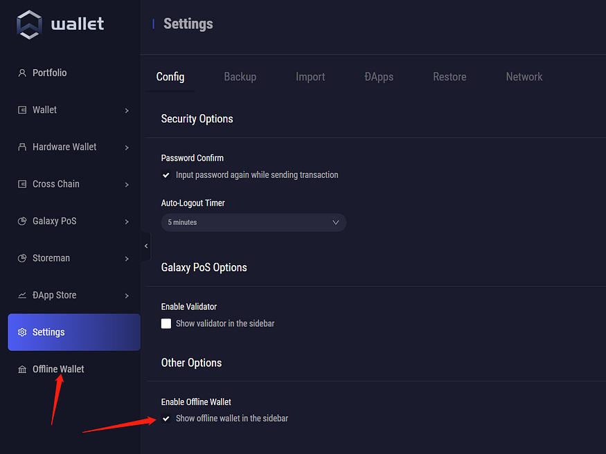 The offline wallet menu will appear, click “Offline Wallet” from the left menu.